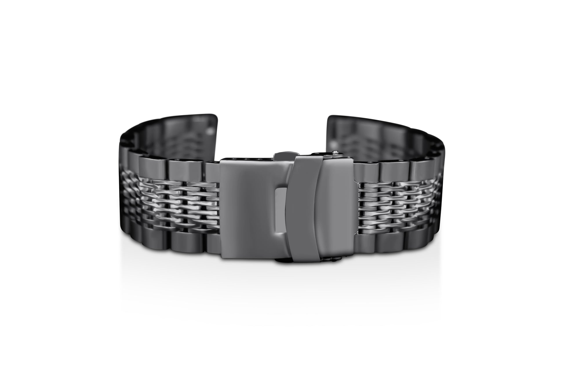 Unisex-Adult Silver Stainless Steel Mesh Wristband - Black 20mm - 22mm